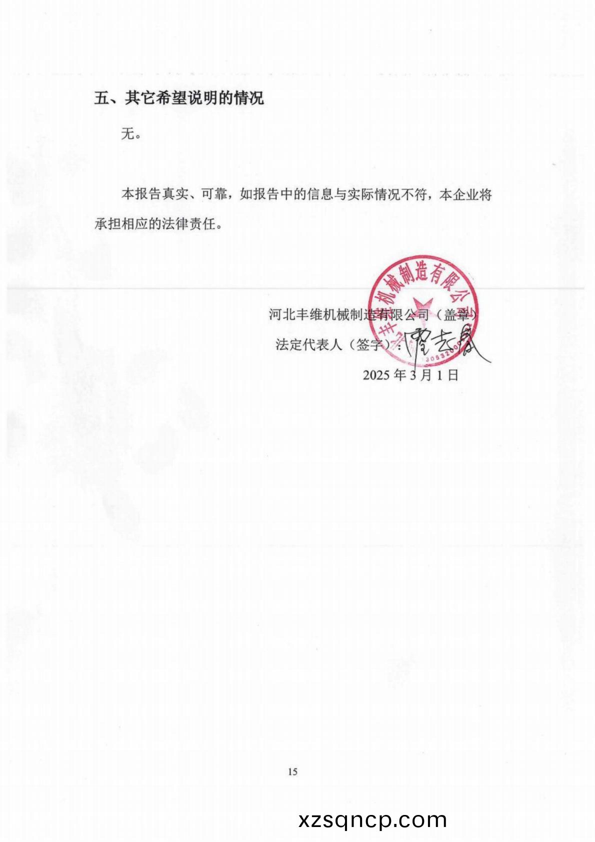 河北(bei)豐維(wei)機(ji)械製(zhi)造(zao)有限(xian)公(gong)司(si)溫室氣體排(pai)放報告