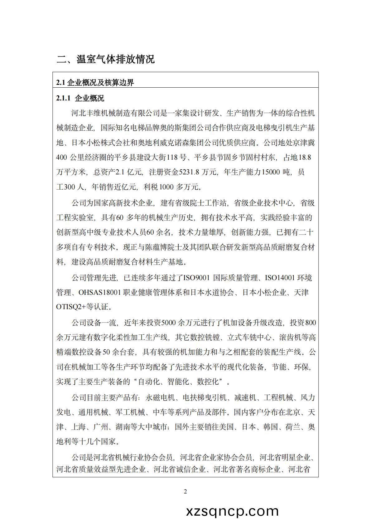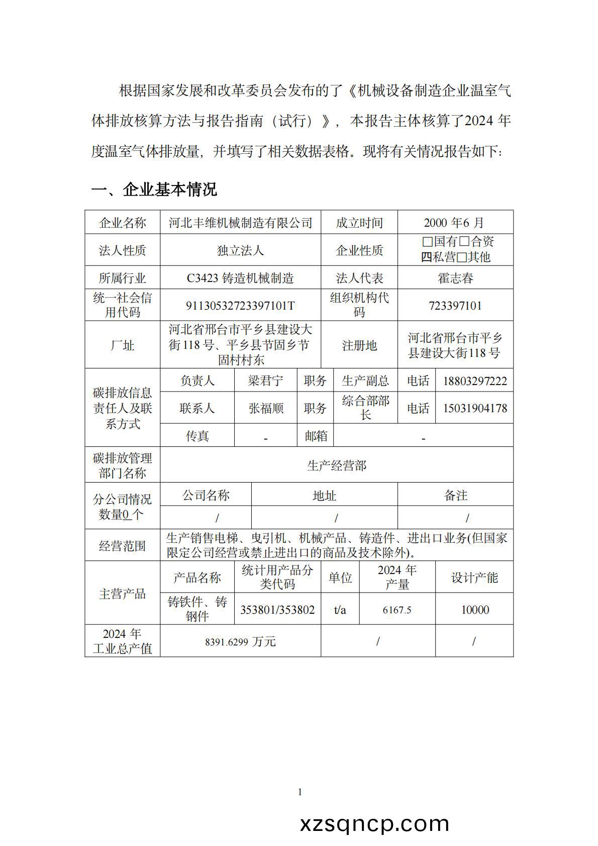 河北(bei)豐維(wei)機(ji)械製造有(you)限(xian)公司(si)溫室氣體(ti)排放(fang)報告